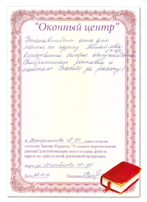 Я, Збышинская Л.Э., узнав из интернета об услугах фирмы «Оконный центр», заказала поставить окно из профиля «Стеко». Очень довольная качеством выполненной работы. С новым окном в комнате стало тепло. Мастера, выполнявшие установку, проявили себя, как настоящие профессионалы, быстро, чисто, аккуратно. Порекомендовала фирму своим друзьям.