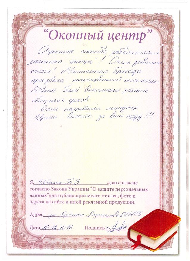 Я, Мозгина Вита Викторовна проживаю по адресу ул. Буденного 16 кв.70, узнала об «Оконном центре» от своих знакомых. Очень советовали. Остались Вашей работой довольны. Заказ и замер был выполнен быстро, в один день. Монтажники свою работу выполнили быстро, качественно и аккуратно. Ребята во время работы отличились вежливостью и внимательностью. Очень довольна работой всего коллектива «Оконного центра». Большое спасибо!!!