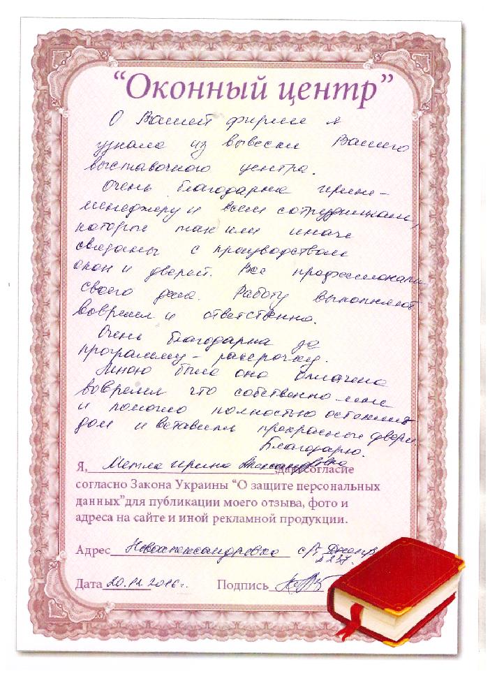Я, Молчанова Виктория Викторовна , об «Оконном центре» узнала случайно, проходила по пр.Соборному,99 и зашла уточнить. Меня очень доброжелательно встретили и я заключила договор.